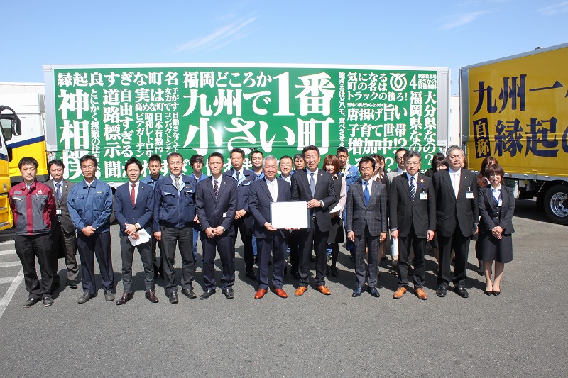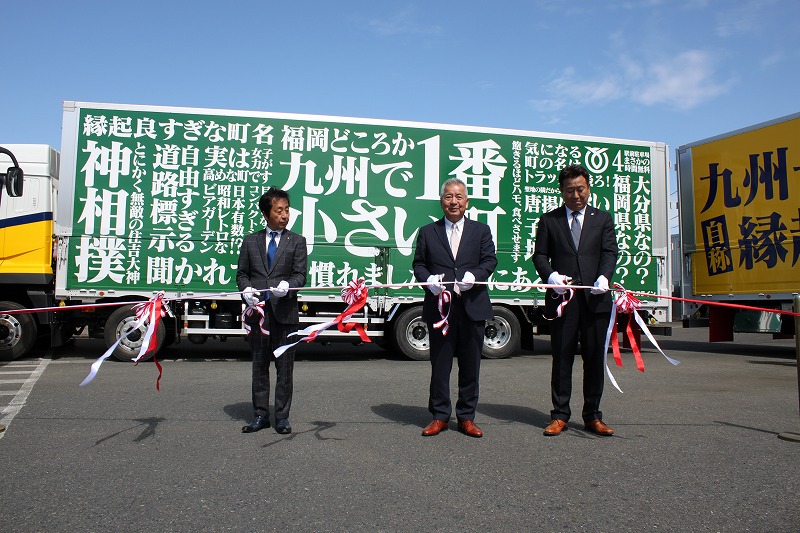 吉富町×アイエヌライン コラボ! ラッピングトラック出発式