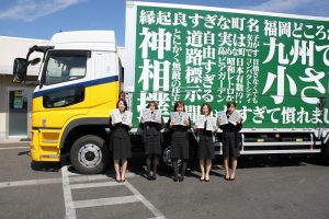 このとっても目立つトラックが、今日から全国を走り吉富町をPRします!