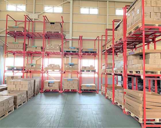 また、自動車部品出荷にも対応していますので、ジャストインタイム輸送にも対応可能です。荷物の保管方法は、ラックとハイマストリーチフォークを完備し、お客様のニーズに柔軟に対応しています。